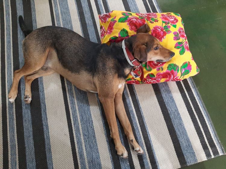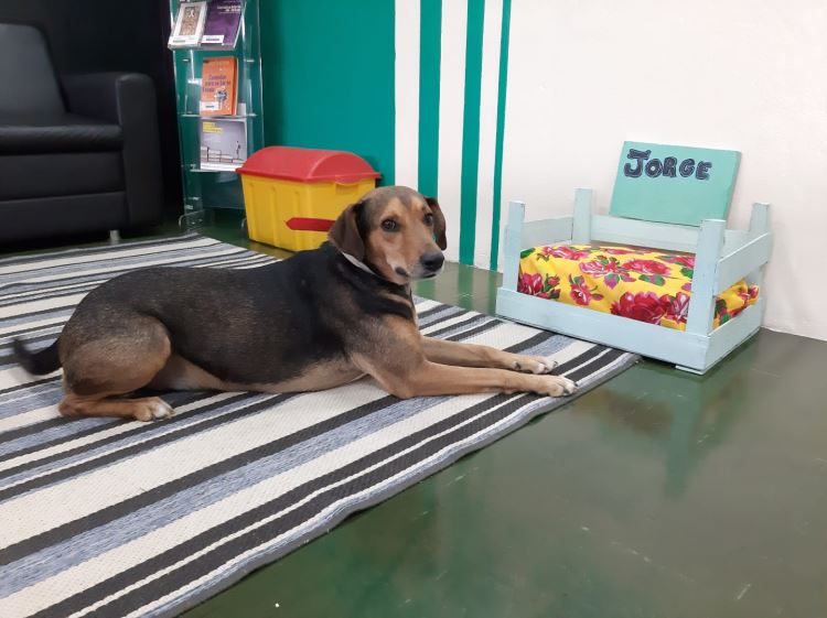 Confeccionaram também uma caminha em material reciclado para o Jorge, cachorro de rua que foi adotado pela Escola SESI de Marília através do projeto Meu Cão no SESI que já adotou mais de 190 cães pelo estado.
