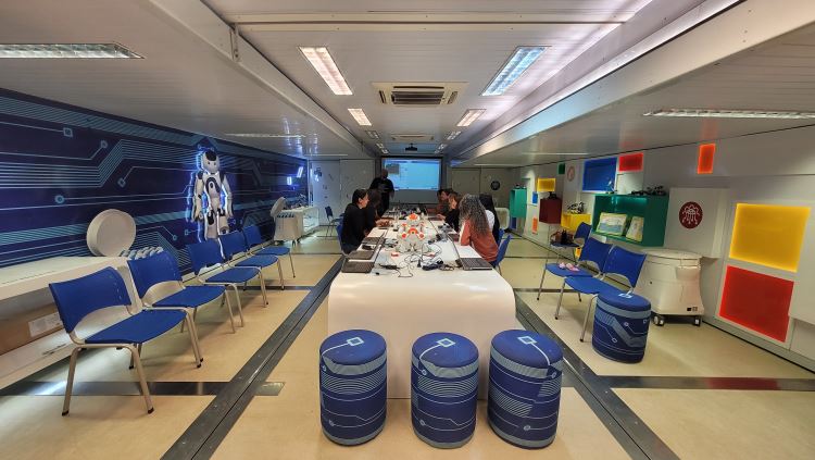 Neste verdadeiro ambiente de aprendizagem sobre rodas, são desenvolvidas visitas monitoradas de cunho informativo e de experiências com a utilização de kit de robótica educacional, softwares de programação e de simulação de circuitos eletrônicos, impressoras 3D, robôs humanoides, entre outros.